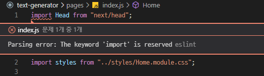 이 전 포스트에서 babel-eslint 를 설치 및 적용을 안해주면 아래 같은 에러가 발생한다..